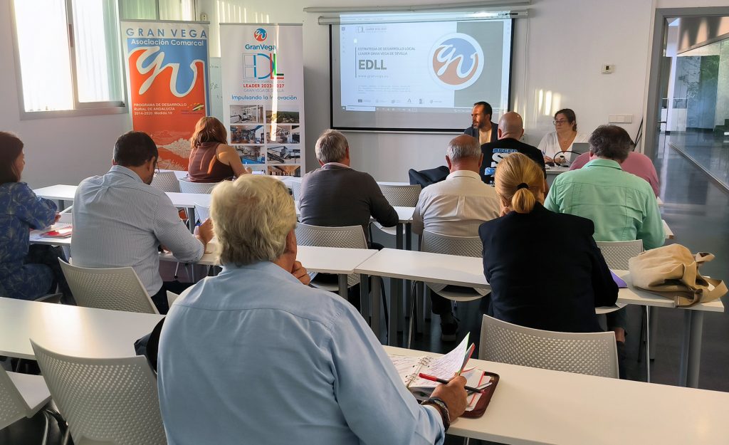 El Grupo de Desarrollo Rural ha puesto en marcha recientemente la campaña ‘Impulsando la Innovación’ a través de la celebración de las primeras sesiones informativas para difundir entre la población, colectivos, empresas y administraciones públicas de la comarca de la Gran Vega de Sevilla, las líneas de ayuda incluidas en la nueva Estrategia de Desarrollo Local Leader 2023-2027 y las tipologías de operaciones que podrán ser presentadas para obtener financiación en el próximo marco de ayudas. Esta actuación está cofinanciada por el Fondo Europeo Agrícola de Desarrollo Rural (FEADER) a través del Plan Estratégico de la PAC 2023-2027, el Ministerio de Agricultura, Pesca y Alimentación y la Junta de Andalucía.
